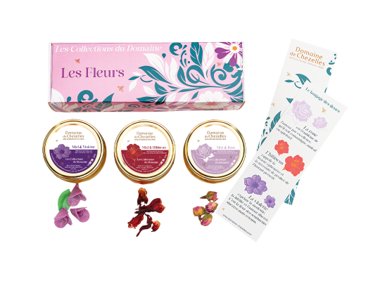 Trois subtils miels d’Acacia aux arômes de Rose, d’Hibiscus et de Violette. Délicats et délicieux à vous faire pâlir de plaisir ! Le raffinement suprême pour une idée cadeau.